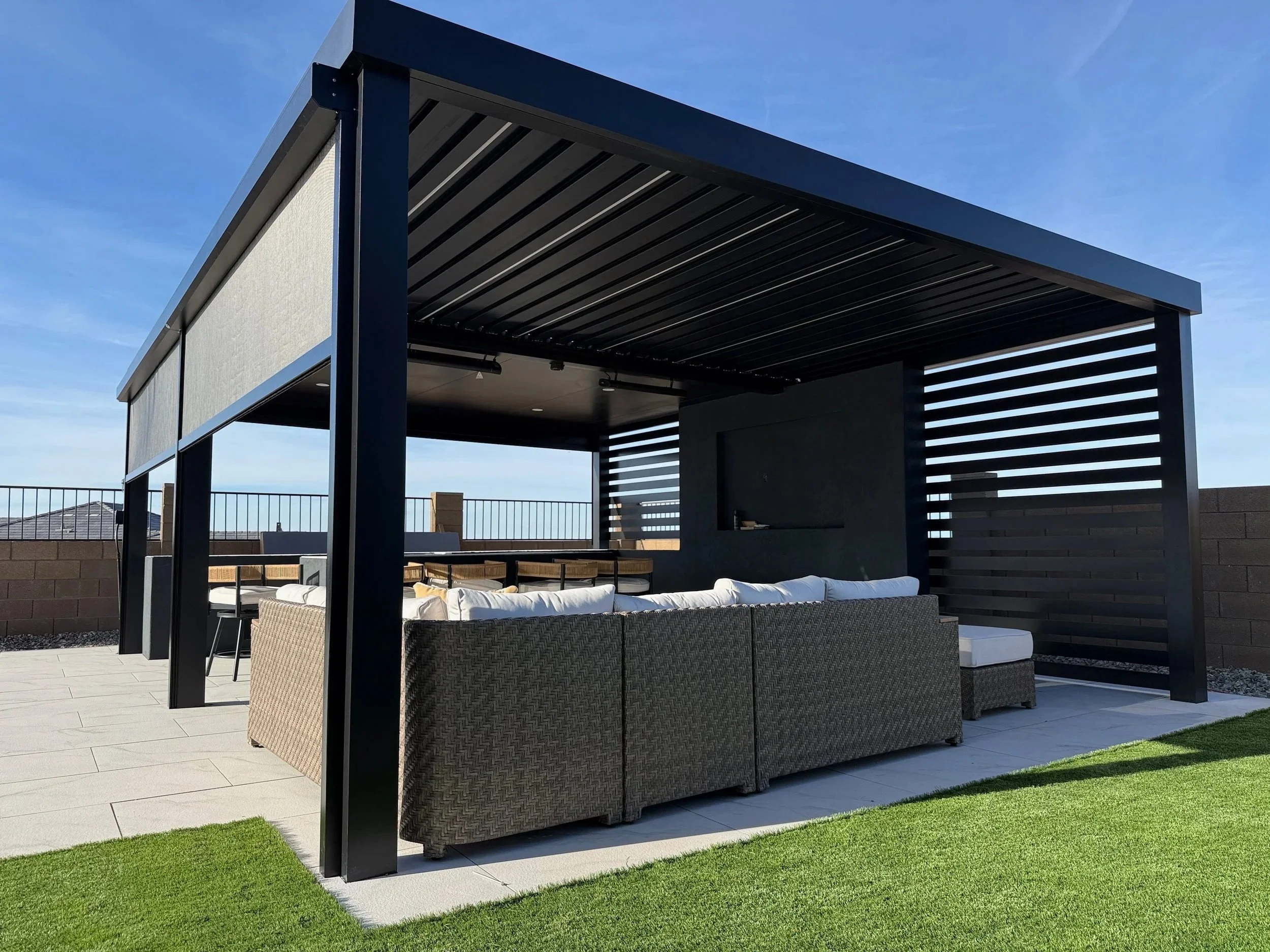 Turn your structure into an all season and all-weather oasis by adding control over sunlight, heat, and wind.